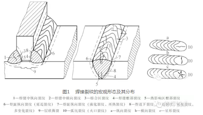 焊接裂紋是焊接結(jié)構(gòu)制造和使用過程中極其普遍而又十分嚴(yán)重的缺欠,因此引起了世界各國(guó)的關(guān)注與重視。在焊接生產(chǎn)中由于鋼種和結(jié)構(gòu)的類型不同,可能出現(xiàn)各種裂紋。焊接裂紋的產(chǎn)生涉及因素很多,往往難以確定屬于何種裂紋,需要進(jìn)行細(xì)致的分析和判斷,得出裂紋性質(zhì)的正確結(jié)論,以便找出產(chǎn)生裂紋的原因及防止措施。